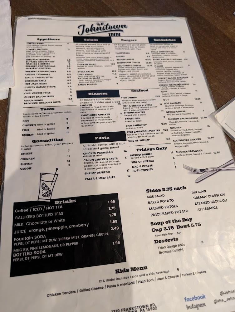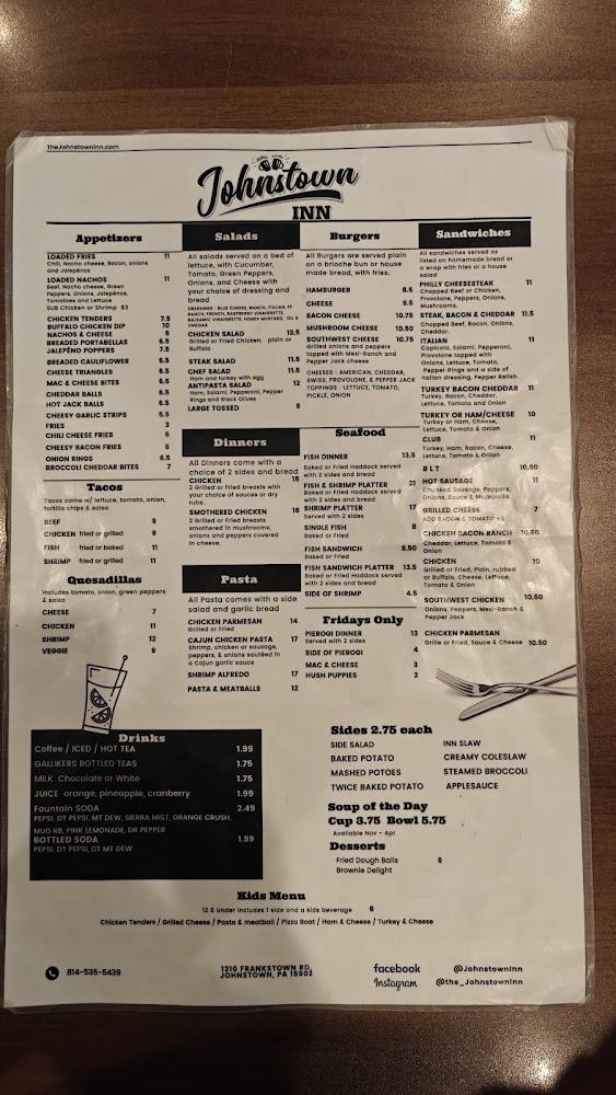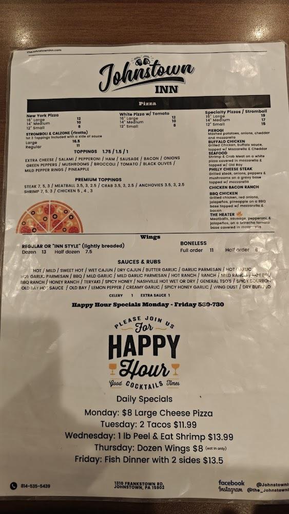 The menu at The Johnstown Inn is extensive, featuring something for everyone. Fresh dough pizza stands out, with classics and specialties that ensure wide appeal. Wings are a crowd-pleaser, available in different flavors to satisfy every palate. Homemade dishes, like hearty sandwiches and comforting entrees, are crafted with care.